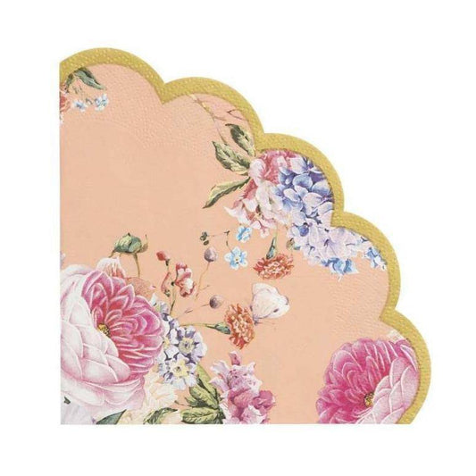 Peach floral scalloped edge lunch Napkins - 20 Pk.