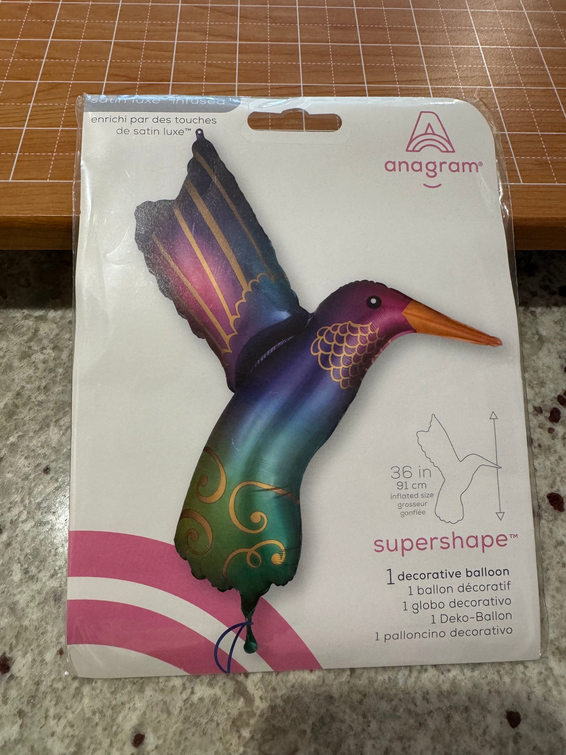 36" Hummingbird satin infused foil balloon