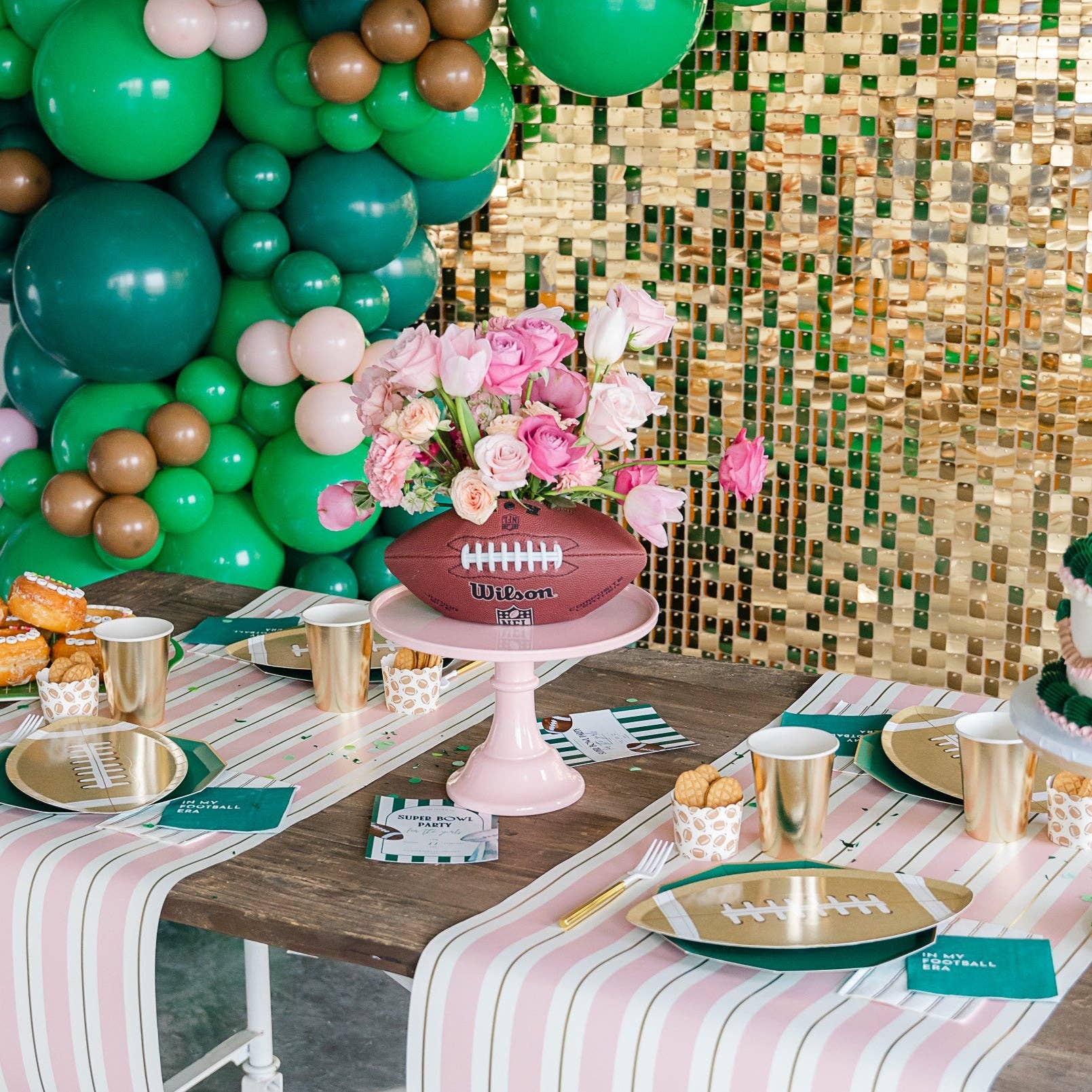 Host the Super Bowl party of your wildest dreams with our In My Football Era Cocktail Napkins! These emerald green sports-themed party napkins feature sleek varsity-style lettering with a phrase that every Taylor Swift fan will appreciate. The perfect addition to any tailgate or 2024 Super Bowl game day event!