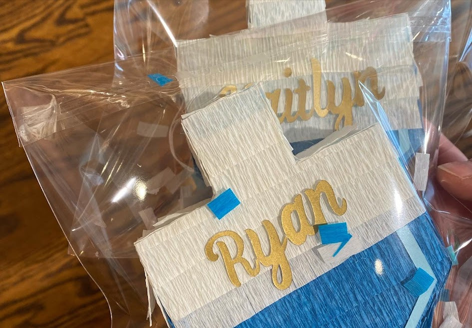 Every pinata is customize with a name made out of gold paper.
